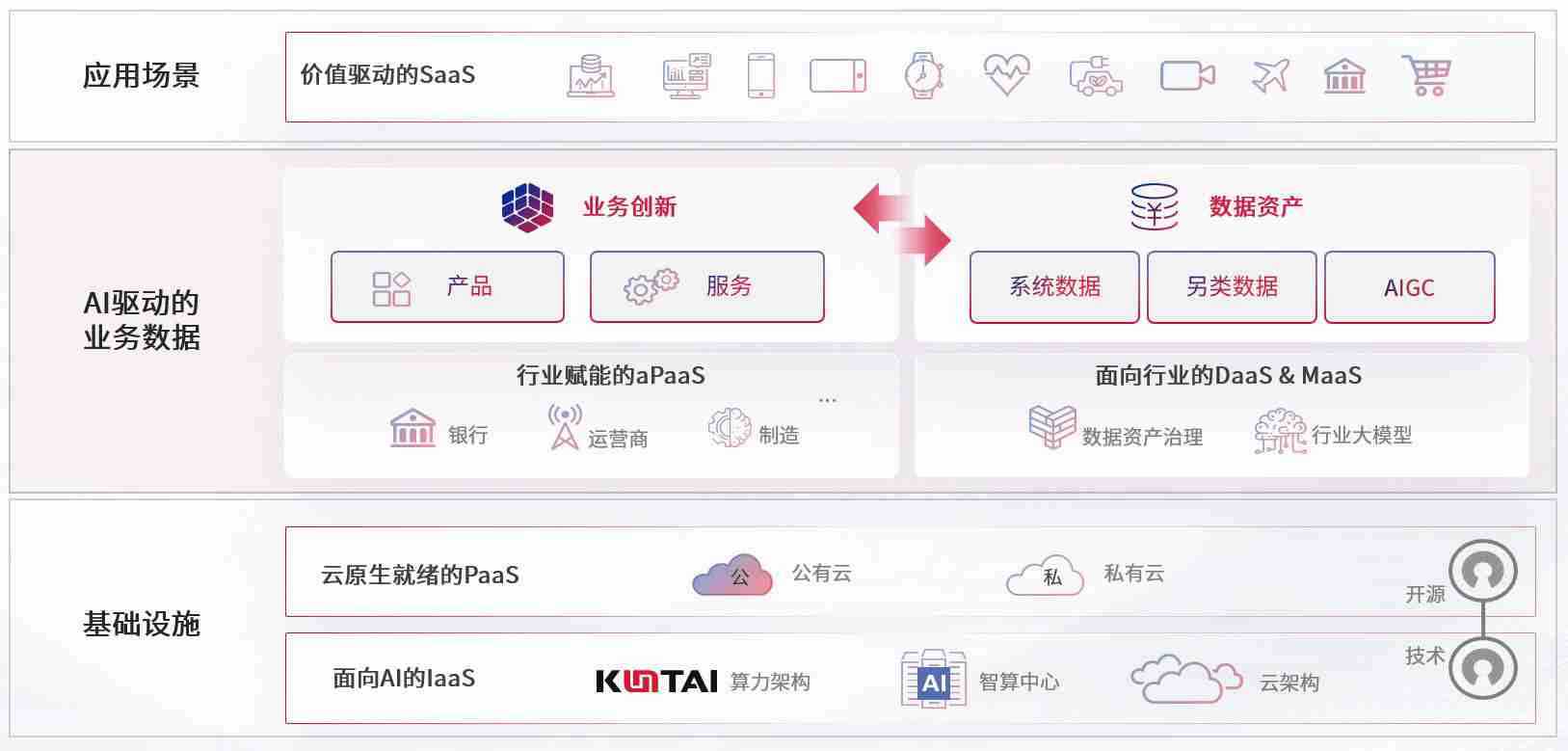 数字时代,,围绕企业数字化转型的关键要素,,,7790CNM必发集团数码开创性的提出数云融合战略和技术体系框架,,,,着力在云原生、、、、数字原生、、AI原生和信创产业上架构产品和服务能力,,为处在不同数字化转型阶段的快消零售、、、汽车、、、、金融、、、医疗、、政企、、、、教育、、运营商等行业客户提供泛在的敏捷IT能力和融合的数据驱动能力,,,,构建跨界融合创新的数字业务场景和新业务模式,,助力企业级客户建立面向未来的核心能力和竞争优势,,,全面推动社会的数字化、、、、智能化转型升级。。。