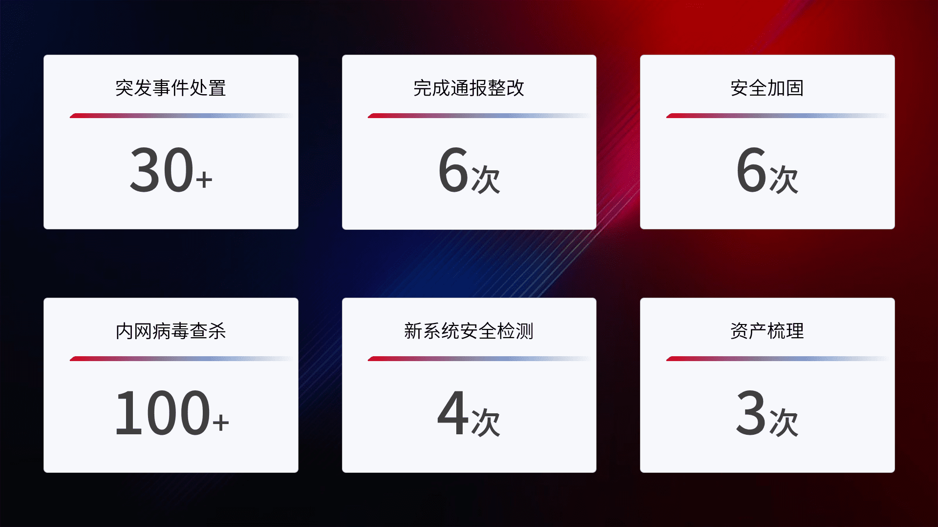 安全水平提升与事件响应:派驻经验丰富的安全工程师,,提升医院网络安全防护的整体水平;建立突发网络安全事件的处置流程,,,提高响应速度和处置能力。。。。