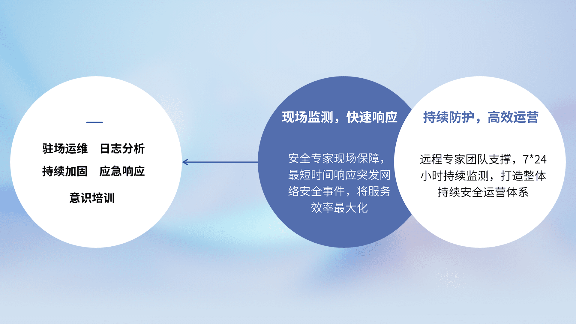 7X24小时持续监测安全事件,保持安全策略有效性,降低资产脆弱性风险,,,,精准拦截黑客攻击,,,减少被黑客利用的机会,,,,第一时间遏制,,,,降低损失。。。。